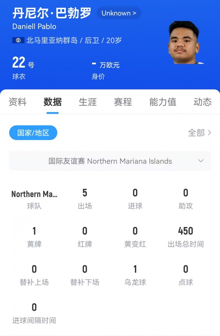本场比赛中,北马里亚纳群岛U23阵容颇具特色:其首发中卫、身披20号球衣的丹尼尔-巴勃罗不仅是一名足球运动员,还同时参与羽毛球项目,并具备官方注册的运动员及裁判员资格。